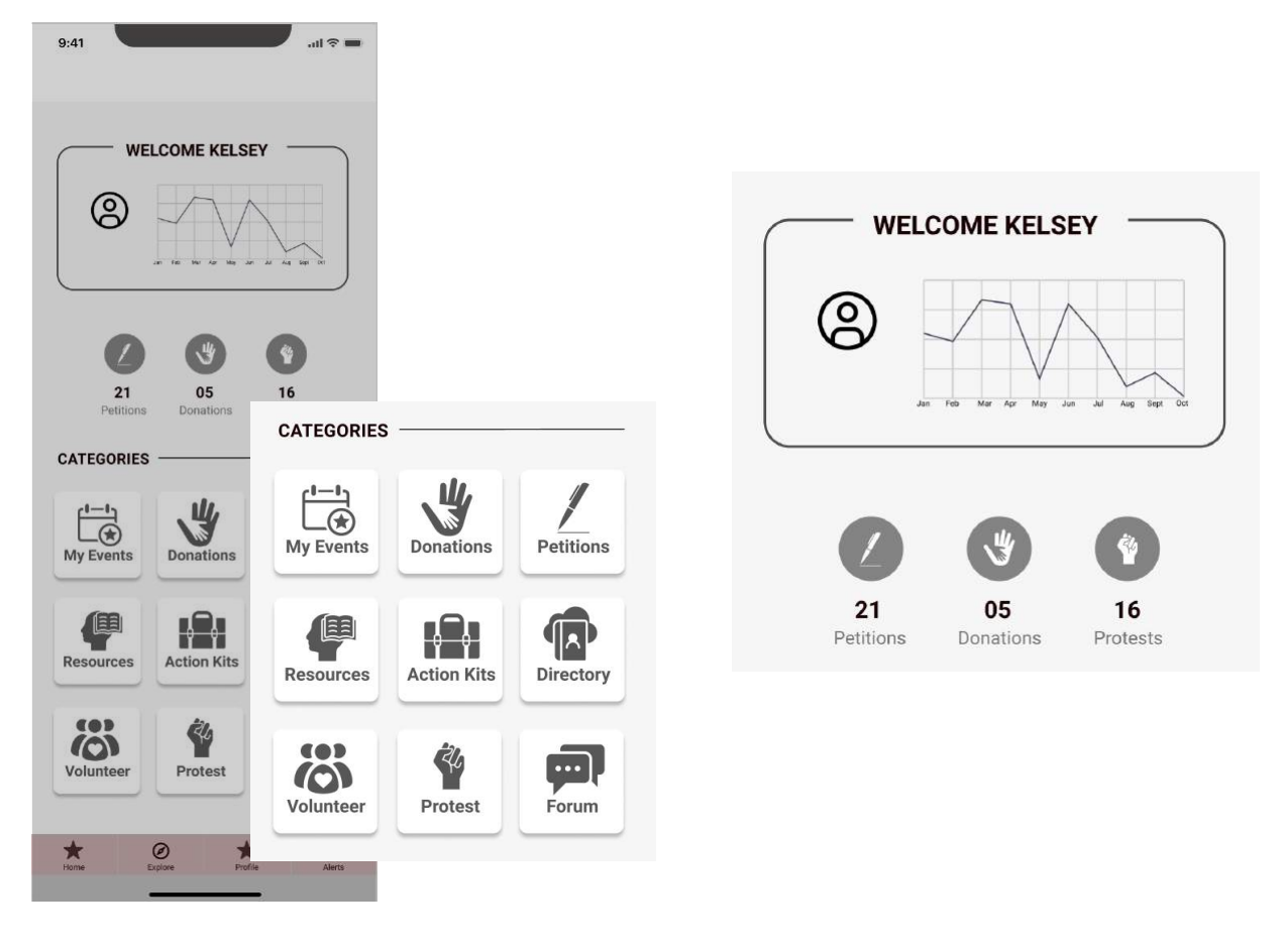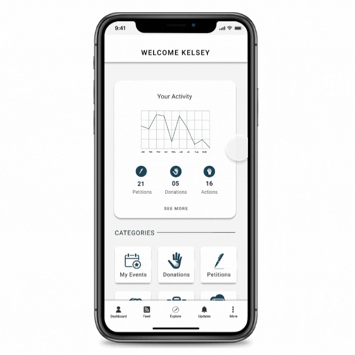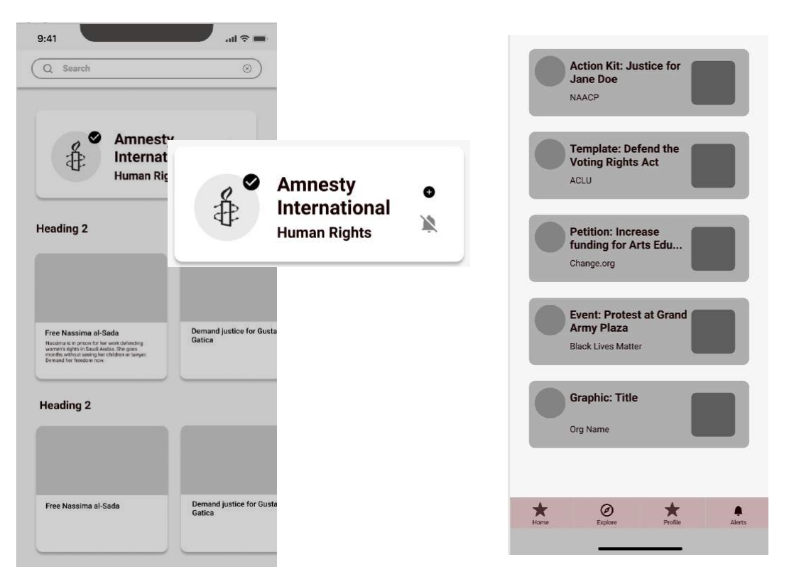 Moving forward, our team recommendations further differentiating the structure of the “Explore” and “Feed” pages. Through greater delineation, users will understand that the “Explore” page is for finding new articles, petitions, and organizations, while the “Feed” page provides updates on organizations and topics the user already follows. Our team also recommends increasing the size of both the “follow” and “alert” buttons, as users had difficulty clicking at the present scale. Finally, it is advised to conduct another round of usability tests, and assess the effects of these improvements.
